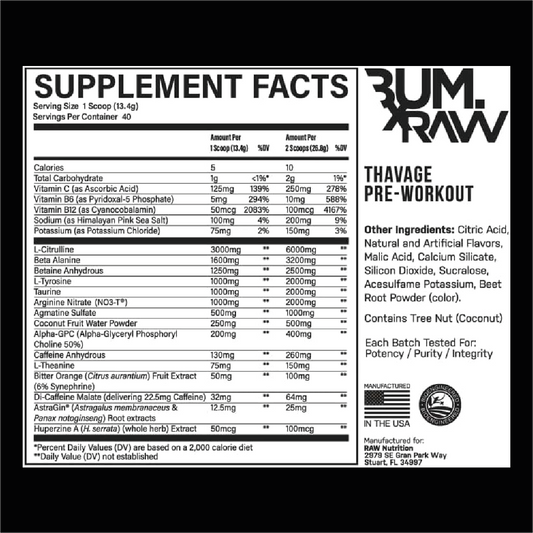 RAW THAVAGE PRE-WORKOUT 40/20 SERV
